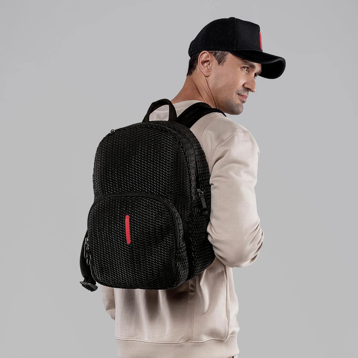 A Mochila Cyclo combina tecnologia sustentável e design funcional para o dia a dia urbano. Produzida com garrafas PET recicladas e a inovadora 3D Knit Tech, é durável, leve e versátil, oferecendo praticidade com estilo premium.