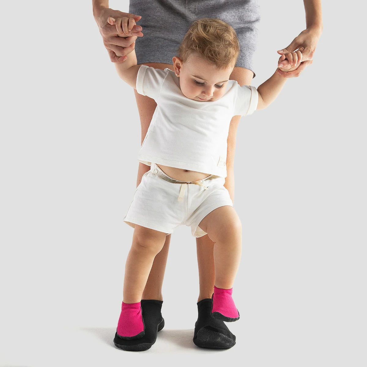 É recomendável calçar o bebê a partir do início do engatinhar, optando por calçados flexíveis que não restrinjam o movimento dos pés e tornozelos. A Sapatilha Bloom, com solado antiderrapante e materiais resistentes ao atrito, é a escolha ideal para essa fase.