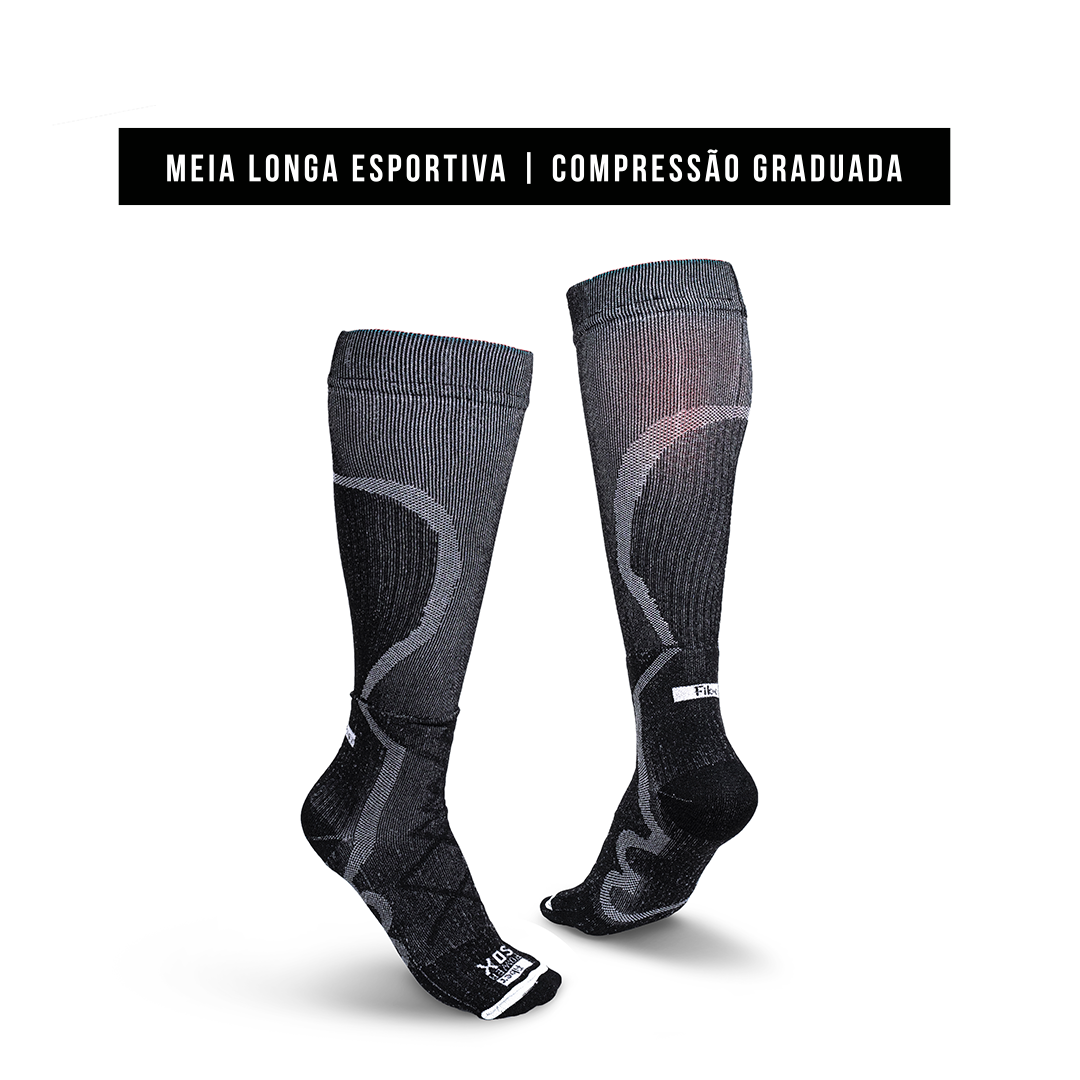 Meias de compressão graduada projetadas para atletas. Desenvolvidas para contribuir para a circulação do sistema sanguíneo e para a contenção dos