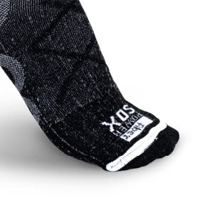 Pé com meia interna de microfibra embutida que expele umidade para fora e reduz o atrito do pé com o calçado para evitar o aparecimento de bolhas.