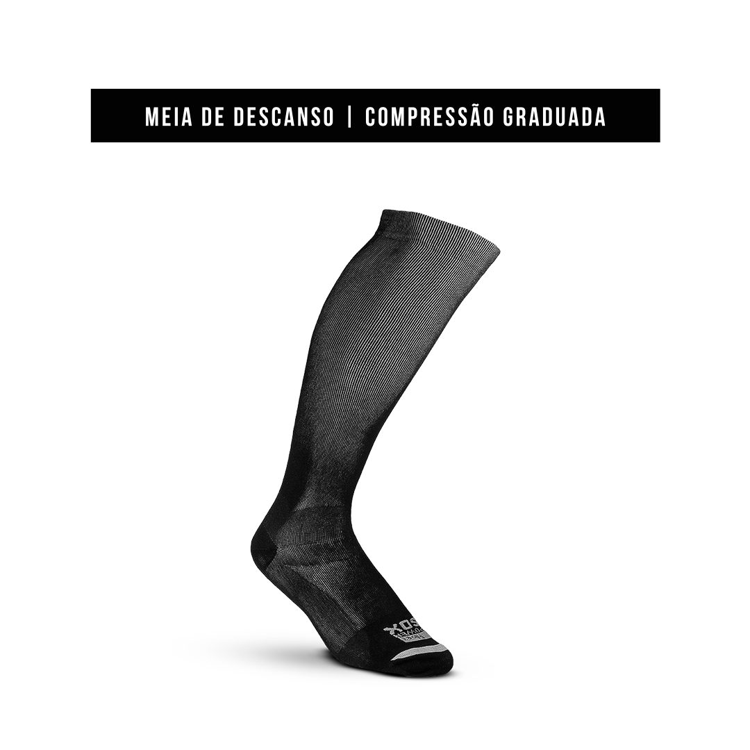 A meia Recovery da Fiber acelera a recuperação muscular, diminuindo a fadiga, a tensão e reduzindo o cansaço causado pelo impacto após exercício ou treino.