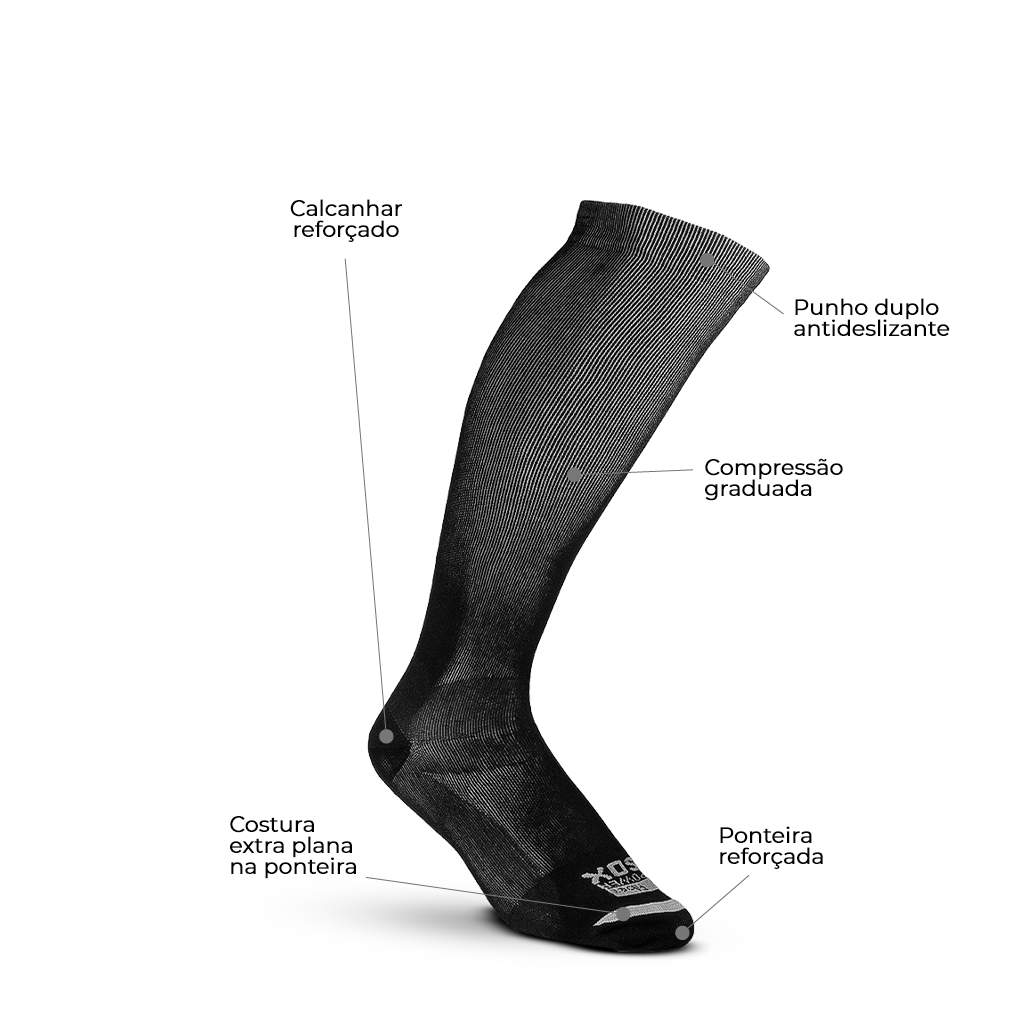 Punho duplo antideslizante, permite maior tração, garantindo que a meia fique posicionada no local adequado.