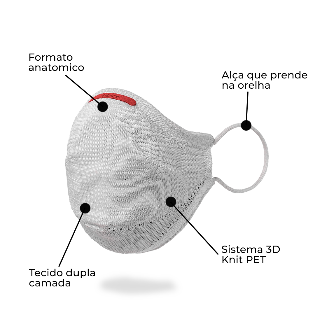 Produzida sem costuras, a máscara Fiber Air é capaz de se moldar ao rosto de quem usa.