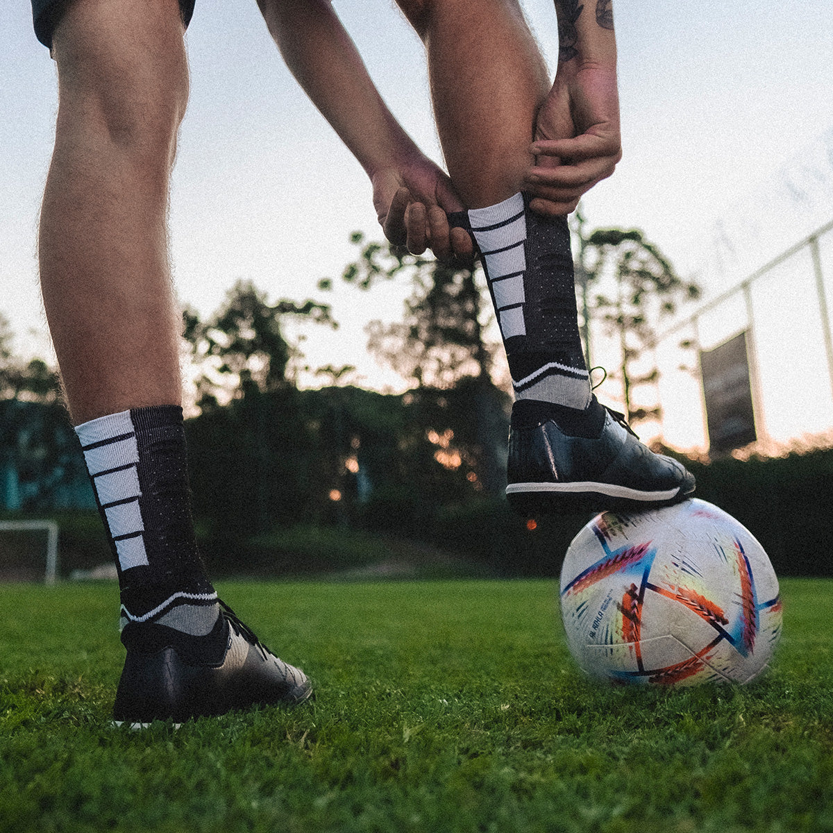 Com uma tecnologia que mantém a aderência por mais tempo através de antiderrapantes localizados na sola da meia, a agilidade e precisão serão garantidas.