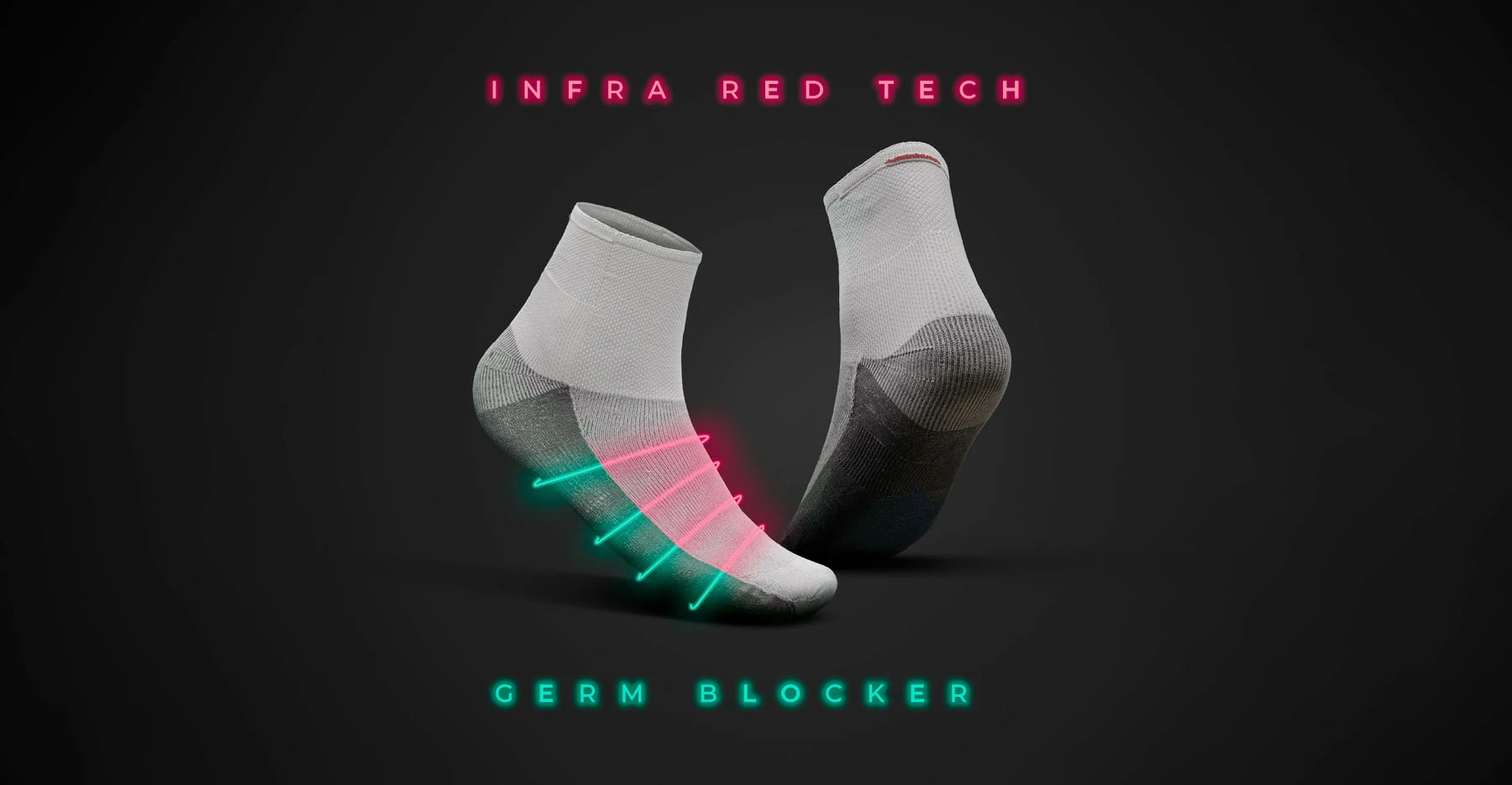 A avançada tecnologia da meia Infra - com minerais inseridos no DNA do fio - absorve o calor do corpo humano e o transforma em raios infravermelhos longos, que são emitidos de volta à pele, estimulando a microcirculação sanguínea.