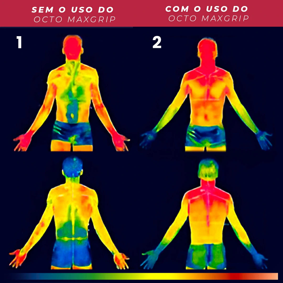 Validamos o uso do Octo MaxGrip através do padrão térmico do corpo sem o uso do Octo MaxGrip e com o uso, nas mesmas condições de estímulo.