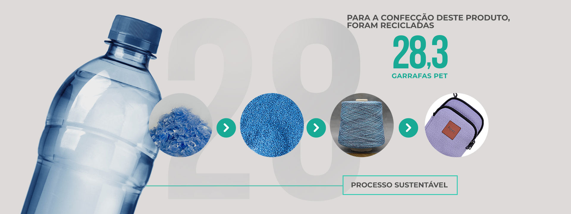 A CADA SHOULDER BAG, 28 GARRAFAS PET SÃO RECICLADAS.